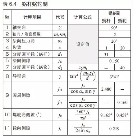 表6.4是蝸桿渦輪副側(cè)隙的計算例。