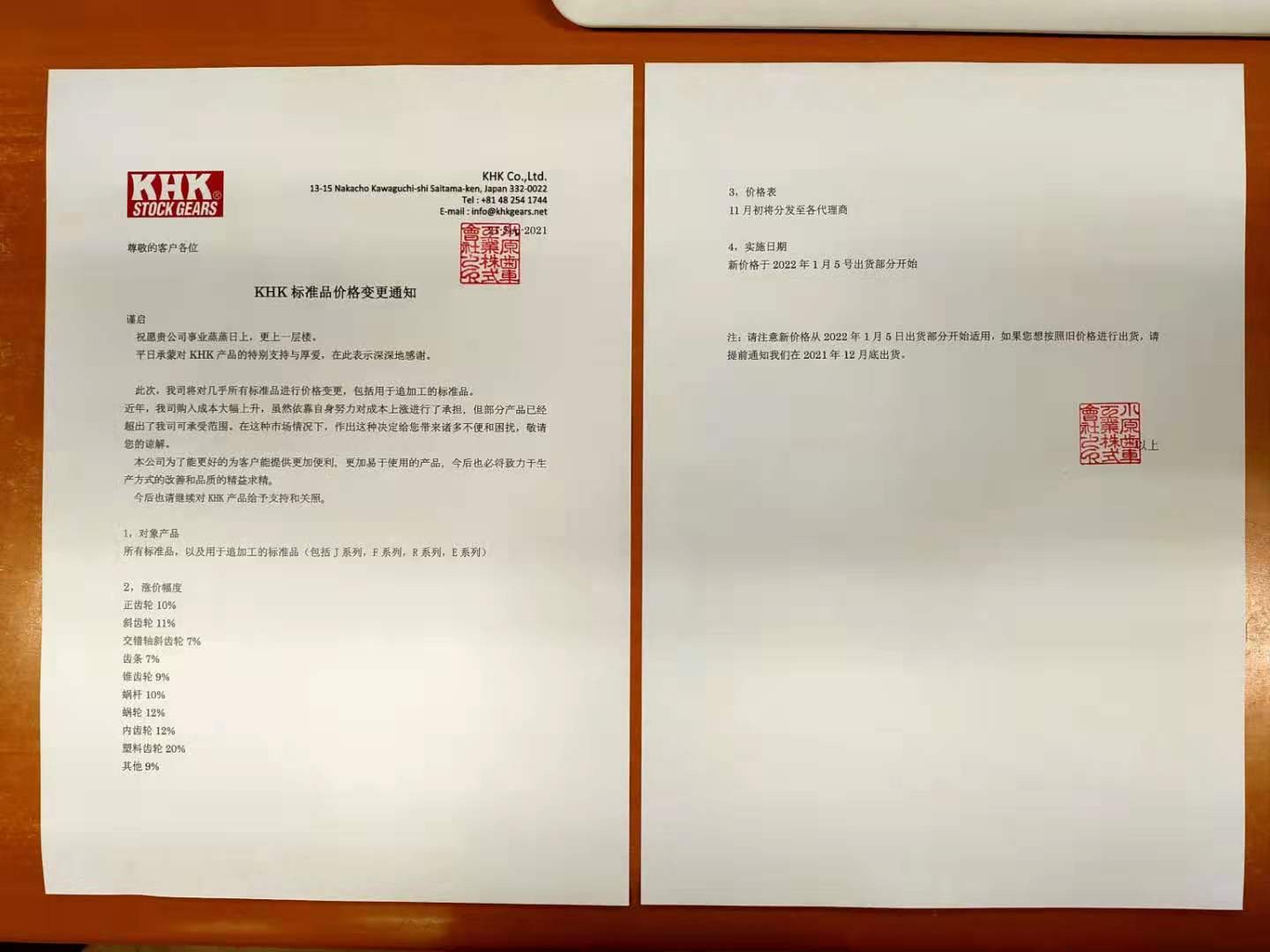 此次,KHK公司將對幾乎所有標(biāo)準(zhǔn)品進(jìn)行價(jià)格變更,包括 用于追加工的標(biāo)準(zhǔn)品 。